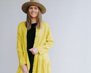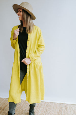 Stylish and universal. Made from 100% pure European linen. In the photos you see the duster made from 'Lime green' color linen.