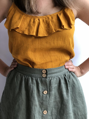Made from wonderfully textured European linen. Brighten up your wardrobe with ordering the top in the cheerful colors or choose the more classic whites, blacks and greys.