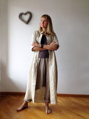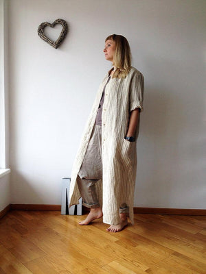 Ready to ship. Linen Maxi Shirt, Maxi Jacket Dress, Lightweight coat, Long Linen Shirt, Plus Size Linen Shirt Dress, Striped Shirt, plus size maxi dress