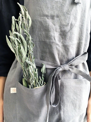 For the kitchen or craft studio, as a gift to oneself or your friend - this classical long linen apron will serve you well.