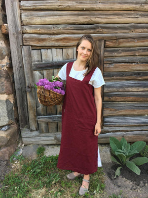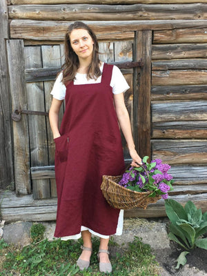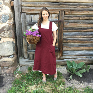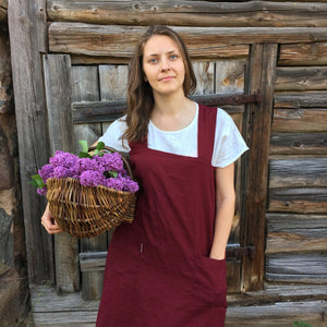 Made from simple medium weight linen in adorable maroon color this will be perfect for you to wear at home, in your studio or garden.