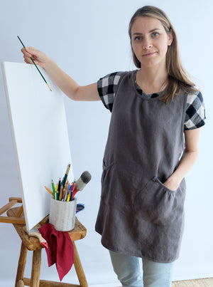 Will make a wonderful gift for your mom, sister or friend. Has a loose cut, so its great to wear over your clothes. The weight of the linen will make it drape beautifully and will protect your clothes from whatever comes your way - be it dust, paint or soil.