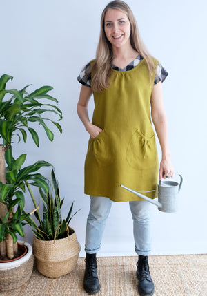 This comfortable linen pinafore apron is inspired by the talented Marian from Miss Mustard Seed. You might have seen her on her blog or social media painting, drawing, making furniture, decorating, gardening or cooking - a talking, walking explosion of creativity.