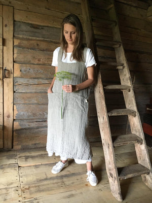 Linen is a beautiful natural textile that is durable and dries quickly when wet. The more you wear and wash it, the more it gains in its character. The pinafore has been pre-washed to add the lovely wrinkle and make it softer.
