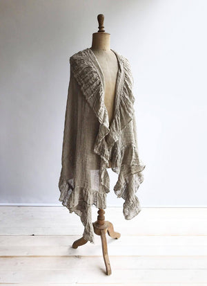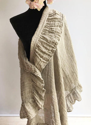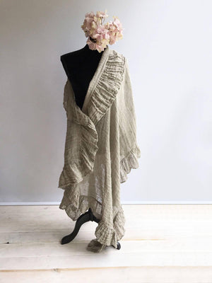 This is a fantastic, generously sized linen shawl with an elegant ruffle along all sides.