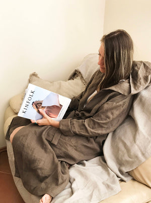 Fantastic, loose womens bath robe made from 100% pure, soft European linen with great attention to detail.