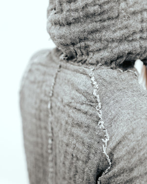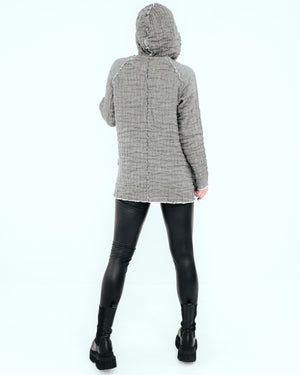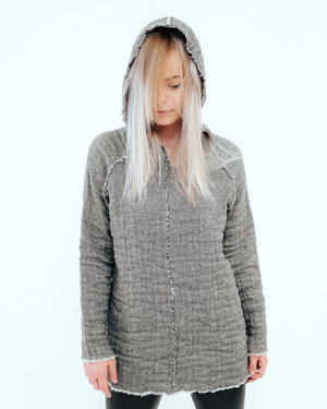 'Ulla' is a rustic and beautiful pullover with a hood from linen and wool fabric (49% wool and 51% linen).