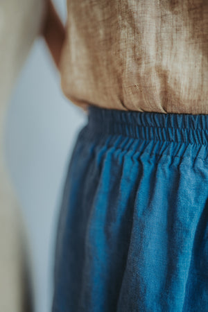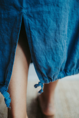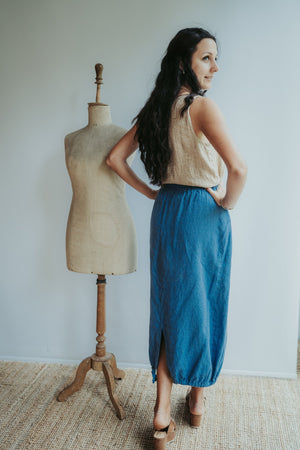Love this balloon linen skirt an interesting drawstring detail at the lower hem. Such a versatile and comfortable piece made from 100% pure linen.