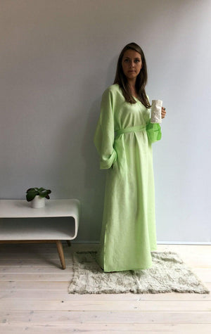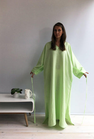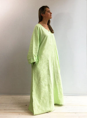 This floor length comfortable loose kaftan for women is made from 100% pure linen with beautiful wide sleeves.