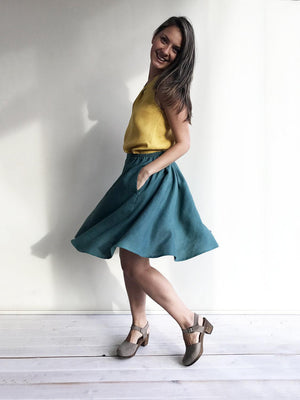 Each piece is individually cut, sawn and pre-washed. We really love making skirt for various sizes - from petit to plus size and more. For the best fitting of this skirt please let us know the following measurements:
