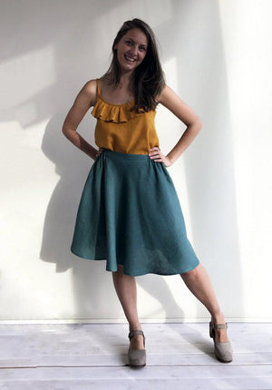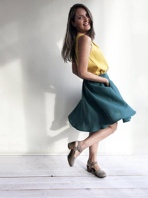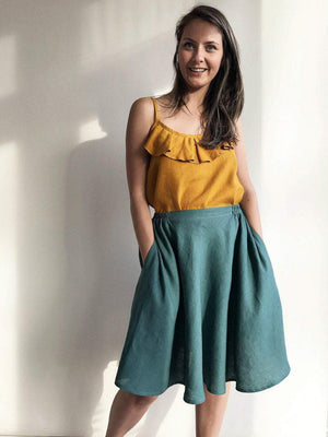 Have fun in these super comfortable linen midi skirt with pockets.