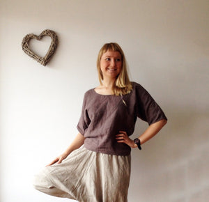 Very comfortable natural linen top with midi length sleeves. Made from wonderfully textured and high quality medium weight European linen.