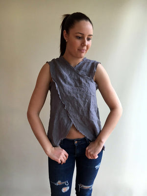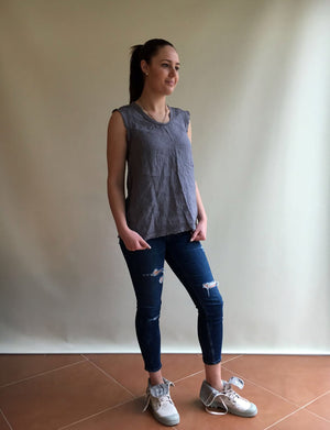 This linen top is perfect for the hot summer days. Made from wonderfully textured and high quality European linen.