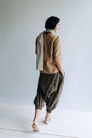 Made from wonderfully textured and high quality medium weight European linen. In the images you see the tops made from camel color linen.