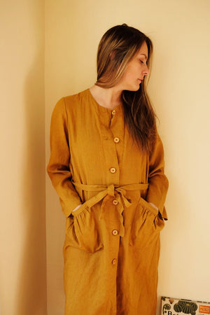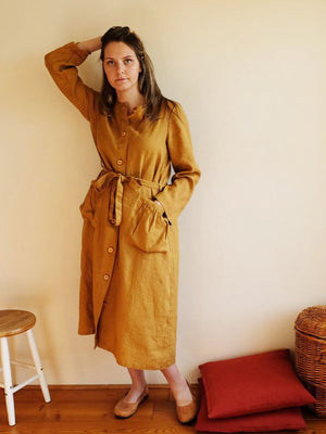 Made from a 100% pure high quality European linen with its characteristic wonderful texture and comes with a belt.