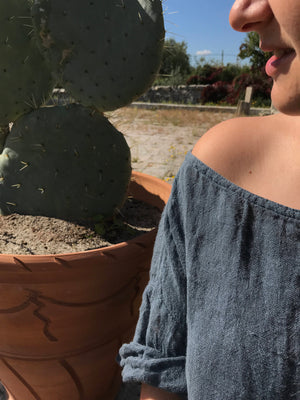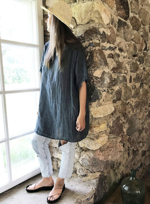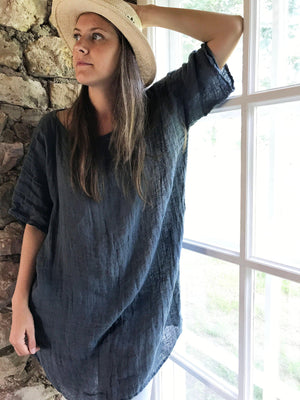Soft and gauzy linen tunic top - excellent for layering and as a stylish cover. Lightweight and pleasant to wear in hot summer days.