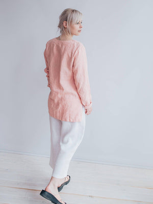 Very comfortable natural linen top with V shaped neck and long sleeves for winter season.
