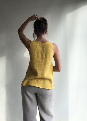 Linen being highly absorbent fabric, the top will allow your body to breathe and feel at ease. And the more you wear and wash it the more it will gain in its character and softness.
