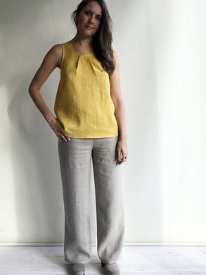 Made from wonderfully textured European linen. Brighten up your wardrobe with ordering the top in the cheerful colors or choose the more classic whites, blacks and greys.