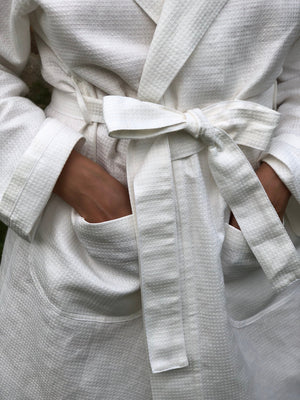 Soft and pure. Made from linen and 25% cotton in waffle weave. Your perfect robe for slow mornings and warm evenings.