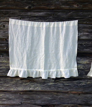 Adorable Linen Café Curtain made from slightly off white 100% European Linen with ruffles. White linen panel.