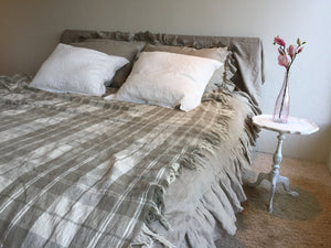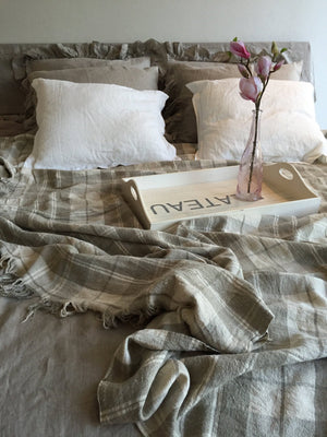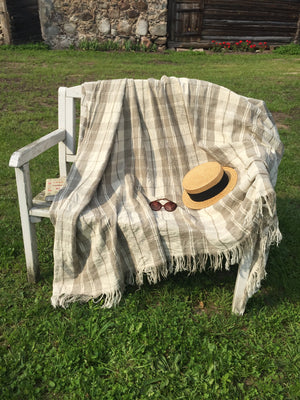 This ain't your usual plaid, but a bed cover made from pure natural linen. It is yarn dyed in natural and soft linen colours (soft brown and creamy white) tones and woven in tartan pattern.