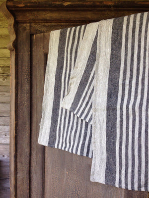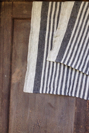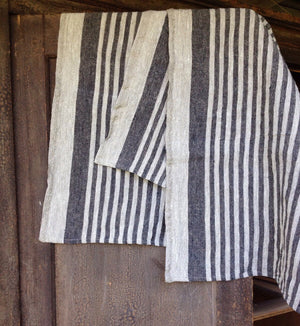 Yearn dyed with black stripes. Adds a great raw touch to your kitchen.