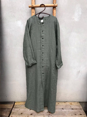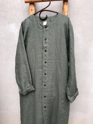 Comfortable button up kaftan for men made from 100% pure linen with great attention to detail. In the photo you see the kaftan made from 'Dusty green' linen.