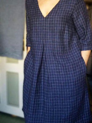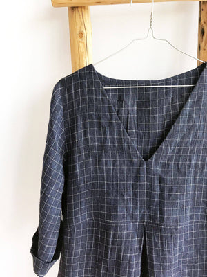 Checkered Linen Tunic 'Yvette', Dark Navy Blue Tunic Plus size tunic
