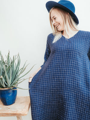 Made from 100% pure European linen. In the images you see the dress made from 'navy windowpane' linen.