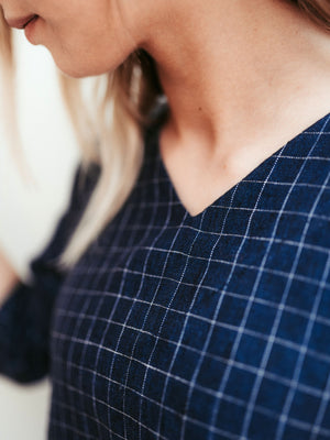 'Jo Ann' tunic dress is a variation on the popular 'Jo' dress - now featuring a v-neckline and 3/4 length sleeves.