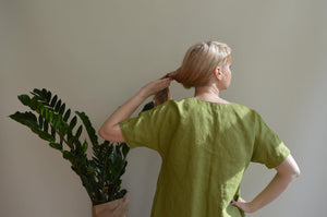 Made from high quality green medium weight linen that will become softer and more distinctive with every wash. No zipper or buttons - just put it on and dive into your day with style and comfort!