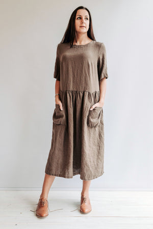 This dress is for you if you are looking for a loose, comfortable clothing that is made from 100% pure linen. Each piece is individually cut, sewn and pre-washed, so if you desire modifications, don't hesitate to contact us.