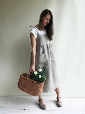 Wear it over a shirt or a tank top or under a jacket when it gets cooler. In the images the sundress is made from 'textured taupe' and is worn over a linen t-shirt in white.