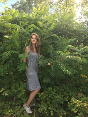 This simple sleeveless dress with a drawstring can be easily dressed up or down with few accessories.