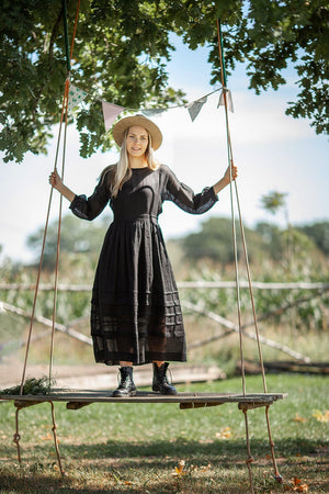 The beautiful fit and flair silhouette in combination with the adorable details make it a truly charming and sensual dress. The bow at the back allows to adjust the fit at the waist.