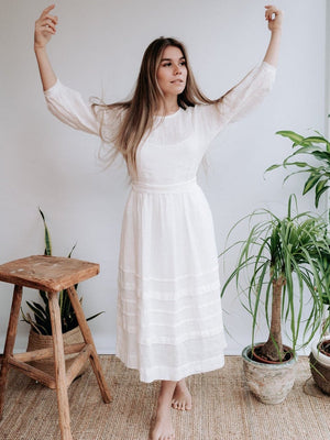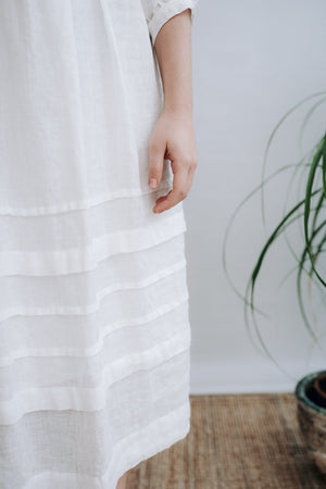 The white linen version of the charming 'Cecilia' dress makes us think about that very special Wedding dress. Made from light gauzy linen, it requires a slip dress underneath (sold separately).