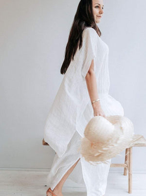 Gauze linen cover up - perfect for your sun or cruise vacation! At beach, by the pool and during the dinner - look fabulous no matter what.