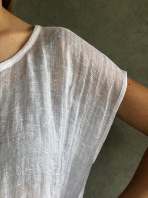 This is a lovely, light weight gauze linen top, that is meant to be loose and comfortable. Perfect for hot days when all you want to feel is a soft breeze against your skin. Made from 100% pure linen gauze. It is somewhat see through and might require a slip underneath.