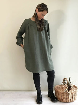 Feel comfortable and beautiful in this natural linen tunic with long sleeves. Wear it as a dress or combine with leggings or jeans.