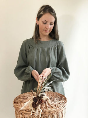 Ready to ship. Loose Linen Tunic with Beautiful Shirring, Womens Tunic, Plus Size Clothing, Linen Tunic Dress, Womens Tunic, Plus size Tunic, Green Tunic