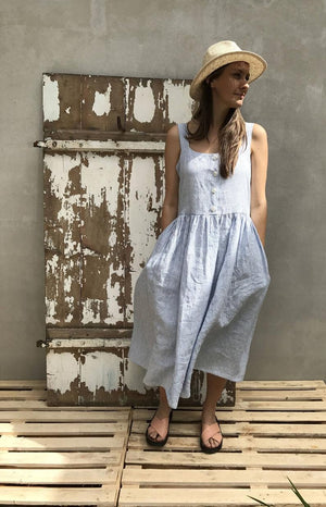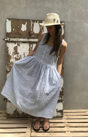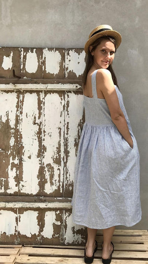 Ready to ship. Button Up Maxi Dress Sleeveless Linen Dress Striped Pinafore Dress Jumper Maxi Dress Plus Size Sundress Linen Dress Women Pinafore Maternity