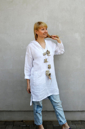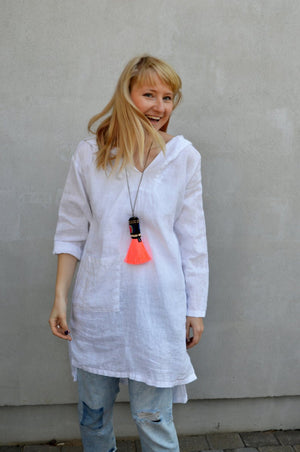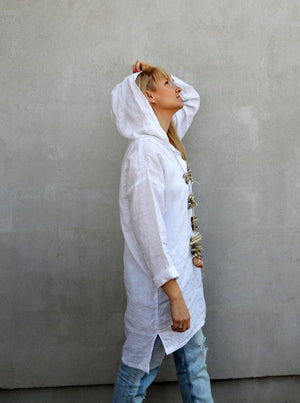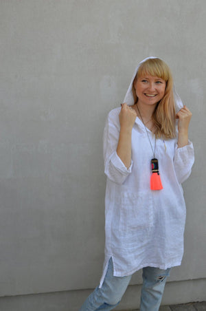 This loose, hooded linen tunic will be your go to piece for your summer days.