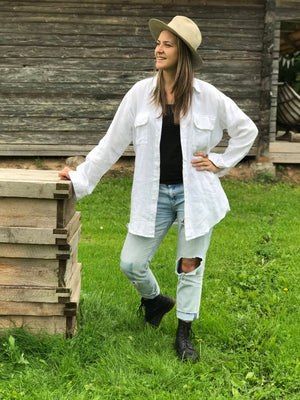 Loose button up shirt for women with long sleeves. Perfect on hot summer days and for layering almost like a stylish jacket.