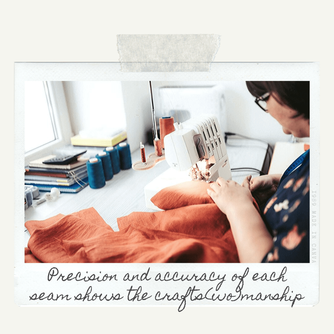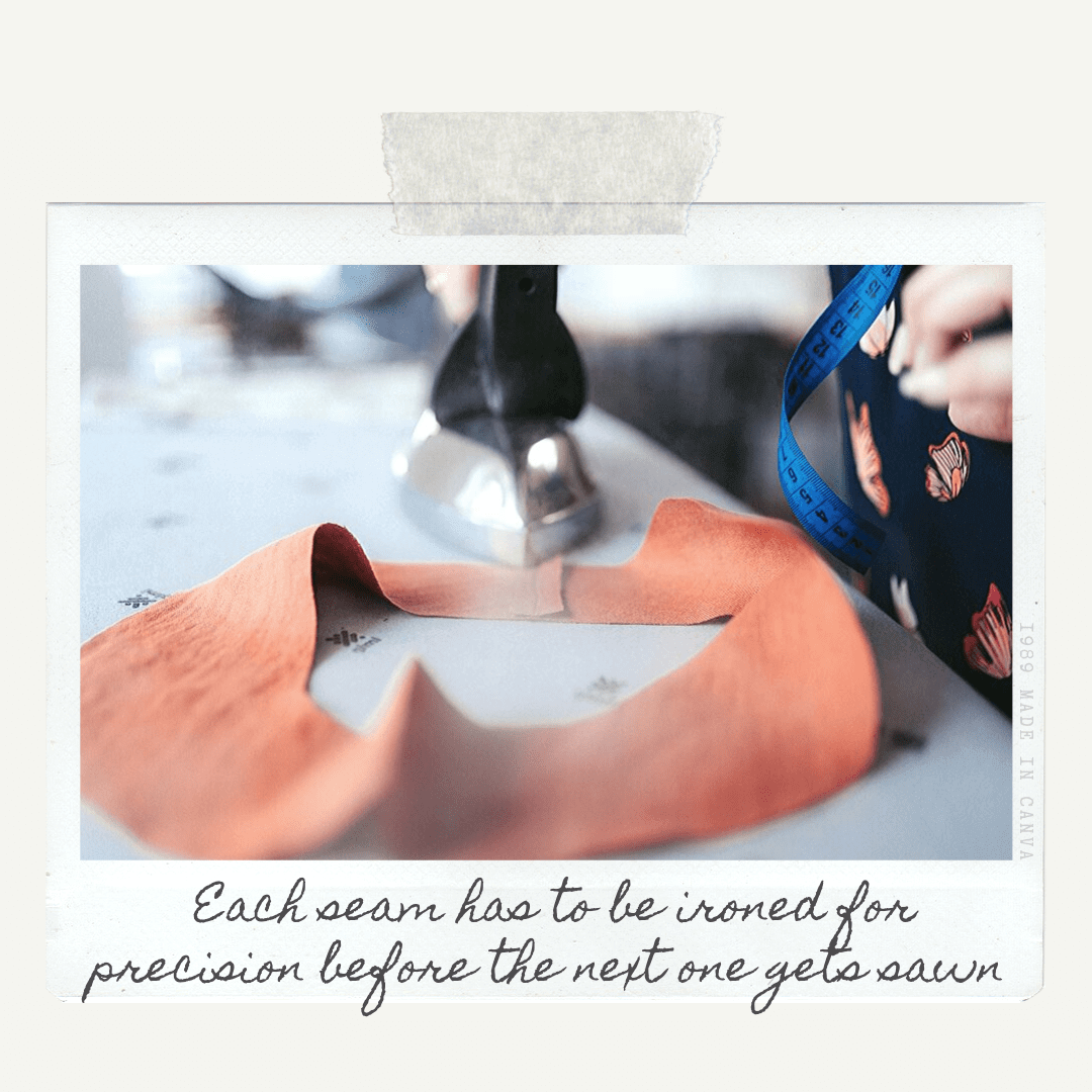 ♥ We care about the quality of craftsmanship! When a tailor can work on one item from start to finish (rather than just sewing one part of the garment, e.g. sleeve, as it is common in fast fashion factories), it creates not only a different connection between the maker and what is being made, but also allows to advance the crafts(wo)mans' skills.