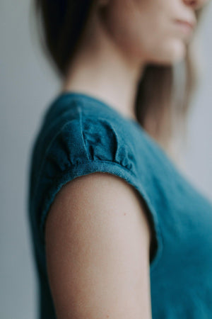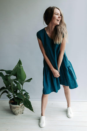 What a fun and comfortable drop waist linen dress! Made from high quality softened European linen for the ultimate comfort of your body. In the images you see the dress made from Deep Teal color linen.