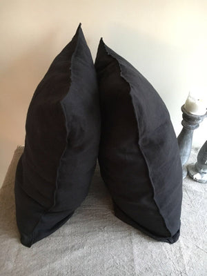 Black Pillowcases, Set of Two Black Linen Pillowcases