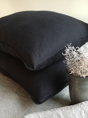 Set of two black linen pillowcases with an envelope closure. Made from 100% European linen.