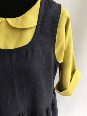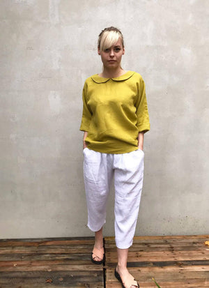 Very cute linen top with Peter Pan collar and roll up sleeves.
