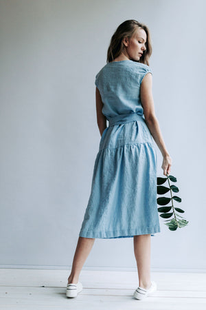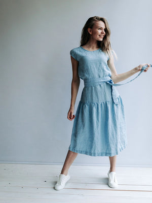 Romantic drop waist linen dress made from high quality softened European linen for the ultimate comfort of your body.